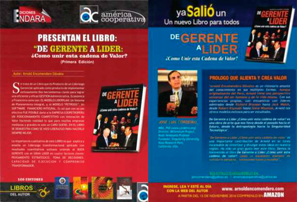 “El Libro de GERENTE A LIDER… contiene parte de la Filosofía de Liderazgo Gerencial que tiene, expresa y hace en el día-día Arnold Encomendero con Idoneidad Técnica y moral. Por ello, doy fe de que Arnold es un Líder comprometido con el desarrollo financiero, económico y social. Recomiendo a los Gerentes Líderes de una Empresa su lectura pero también su Reflexión- acción para crear valor, en su Pensamiento Estratégico y capacidad de ejecución con un buen clima de trabajo. Un Libro que exige tener calidad de Lideres- Calidad de Gobernantes. Obra grandiosa de un Líder honesto, Investigador a Carta cabal, en el presente y con visión de futuro. Les Recomiendo su Lectura”. |