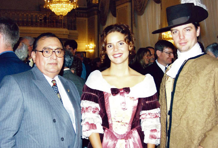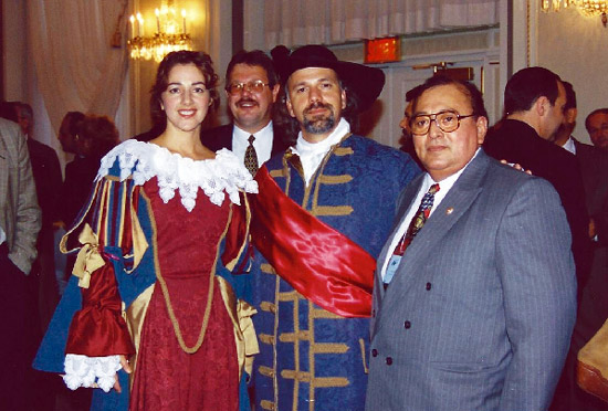 Con los Reyes del Reinado de QUEBEC Región de Habla Francesa de CANADA, considerada como Patrimonio Mundial de la UNESCO posa con los Reyes de QUEBEC en el Marco de la Asamblea Regional de la ACI. - Americas, en el año del 1996 |