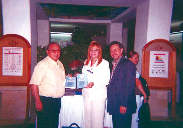 Arnold entrega su Libro “Gestión Cooperativa para ser Competitivos” a sus amigos Puertorriqueños Jhay Lopez, y Elva Echevarria cn Cartagena Colombia en el año 2001. |