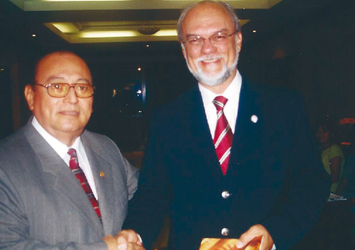 Con el prominente Líderes del Cooperativismo Brasileño Dr. Américo Otumi en Guadalajara México, en la Conferencia Regional del 2008. |